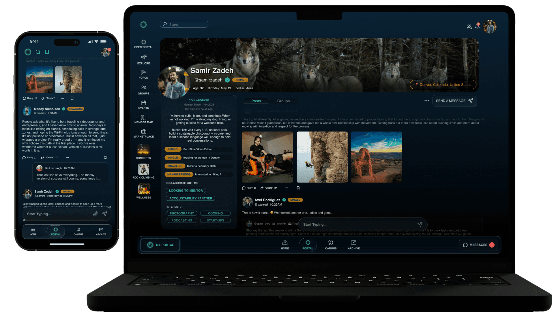 Includes our FORUM, MEMBER MAP, and GROUPS based on interest and location + more features will be added after launch!