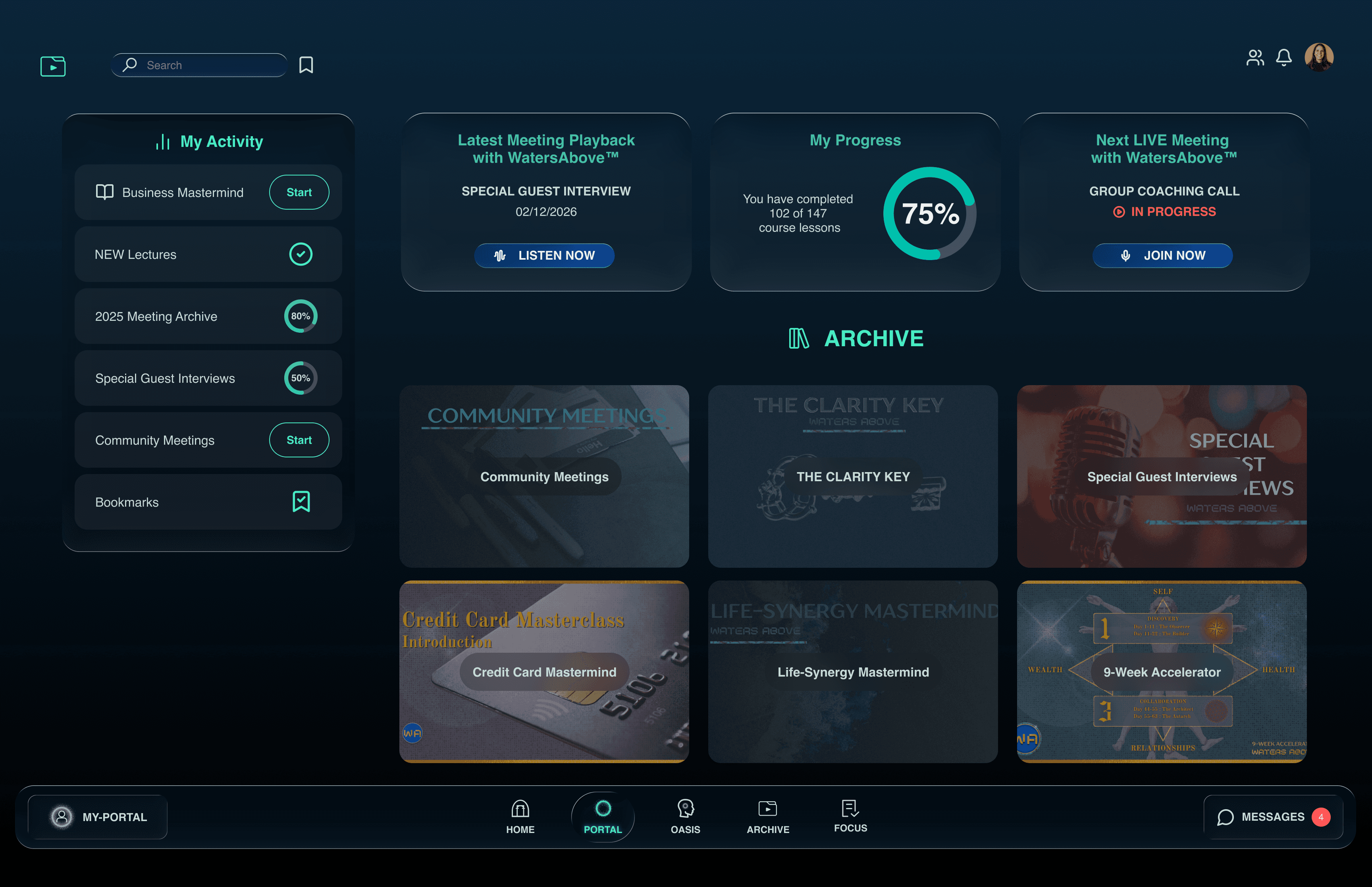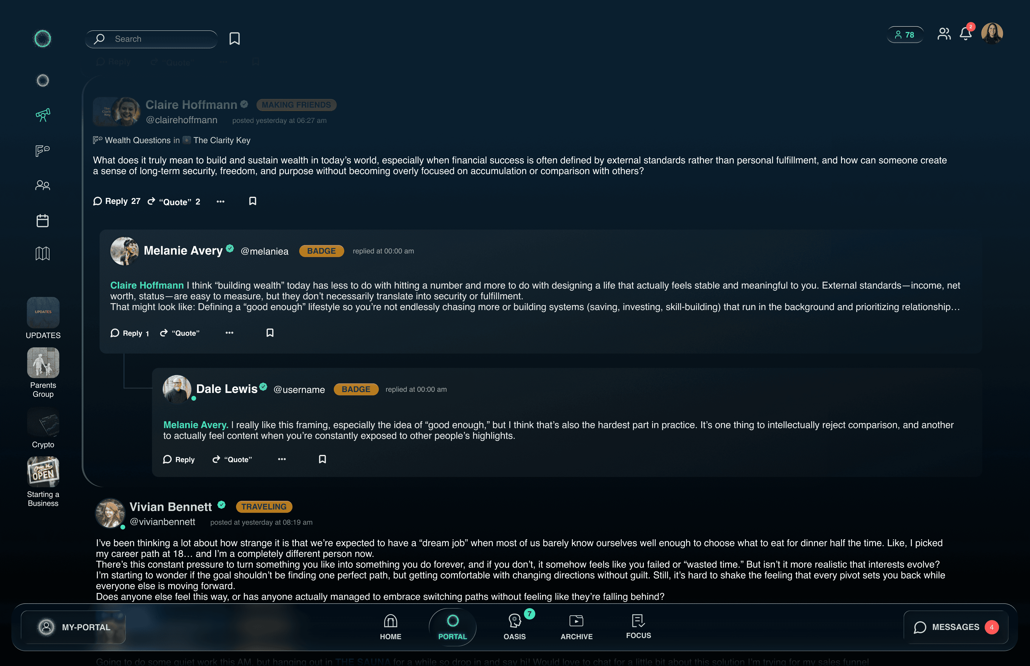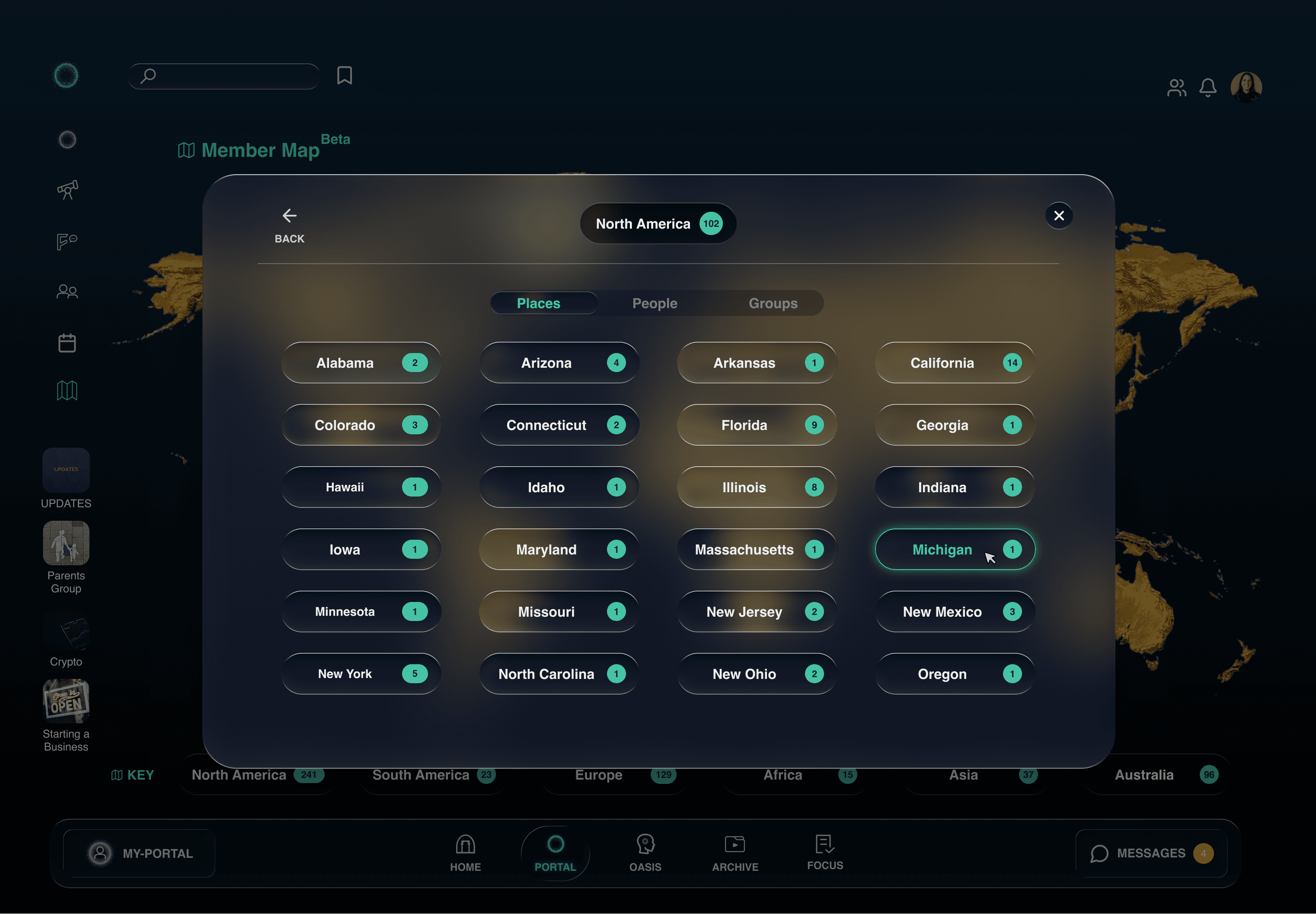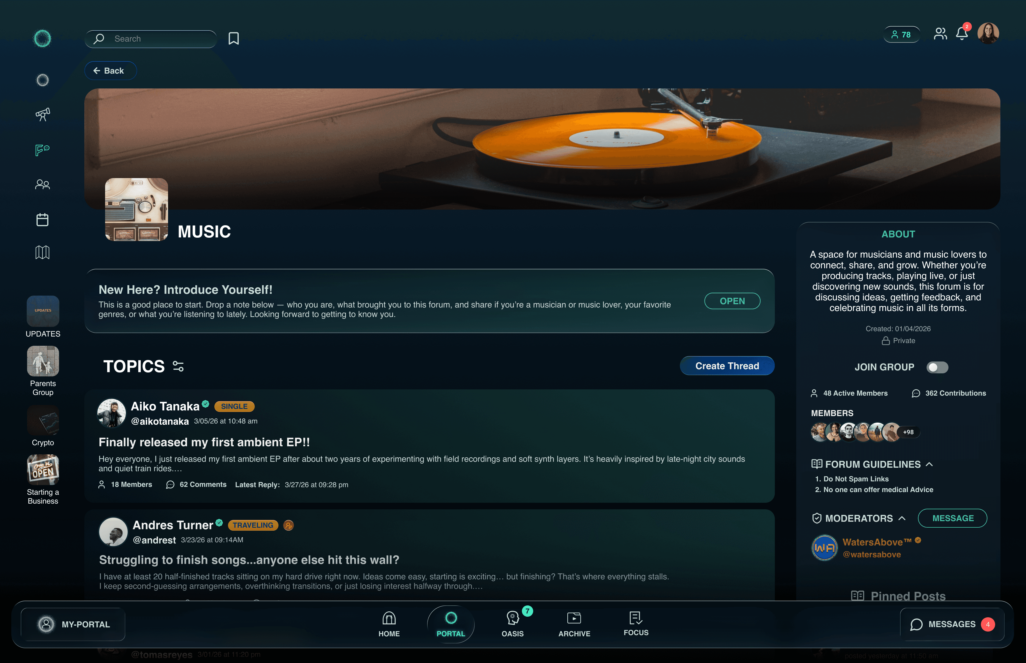 PORTAL, FORUM, MEMBER MAP, OASIS, ARCHIVE